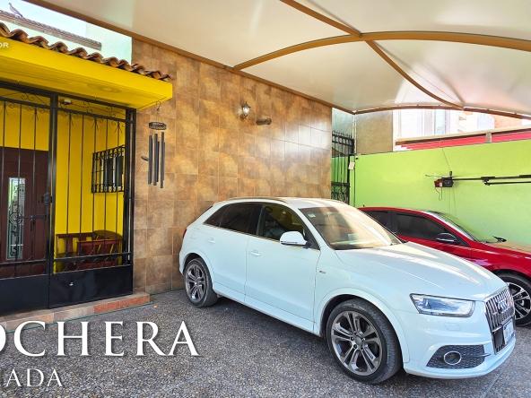 La cochera techada es para 3, con una de las 2 puertas automatizada.
