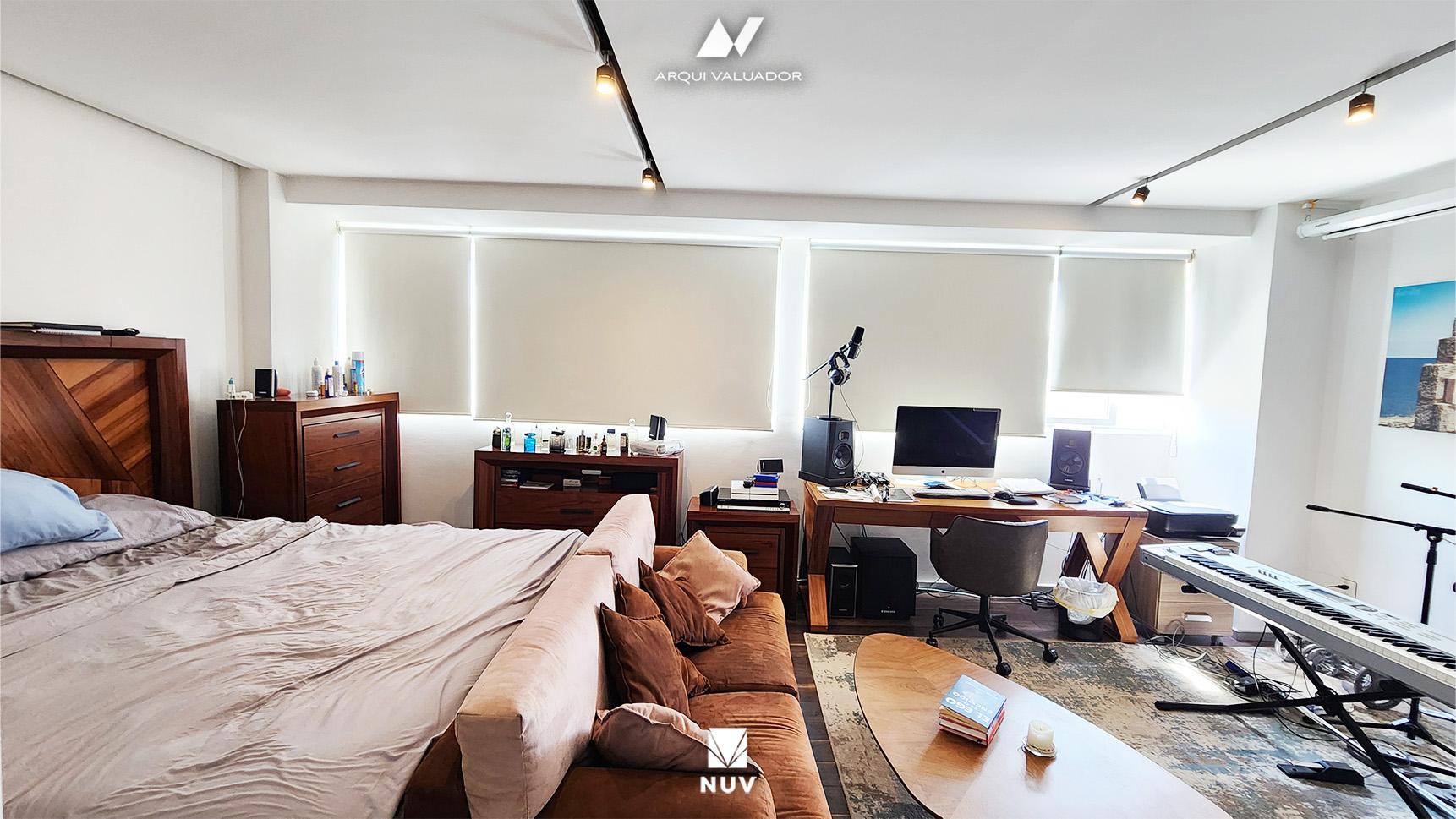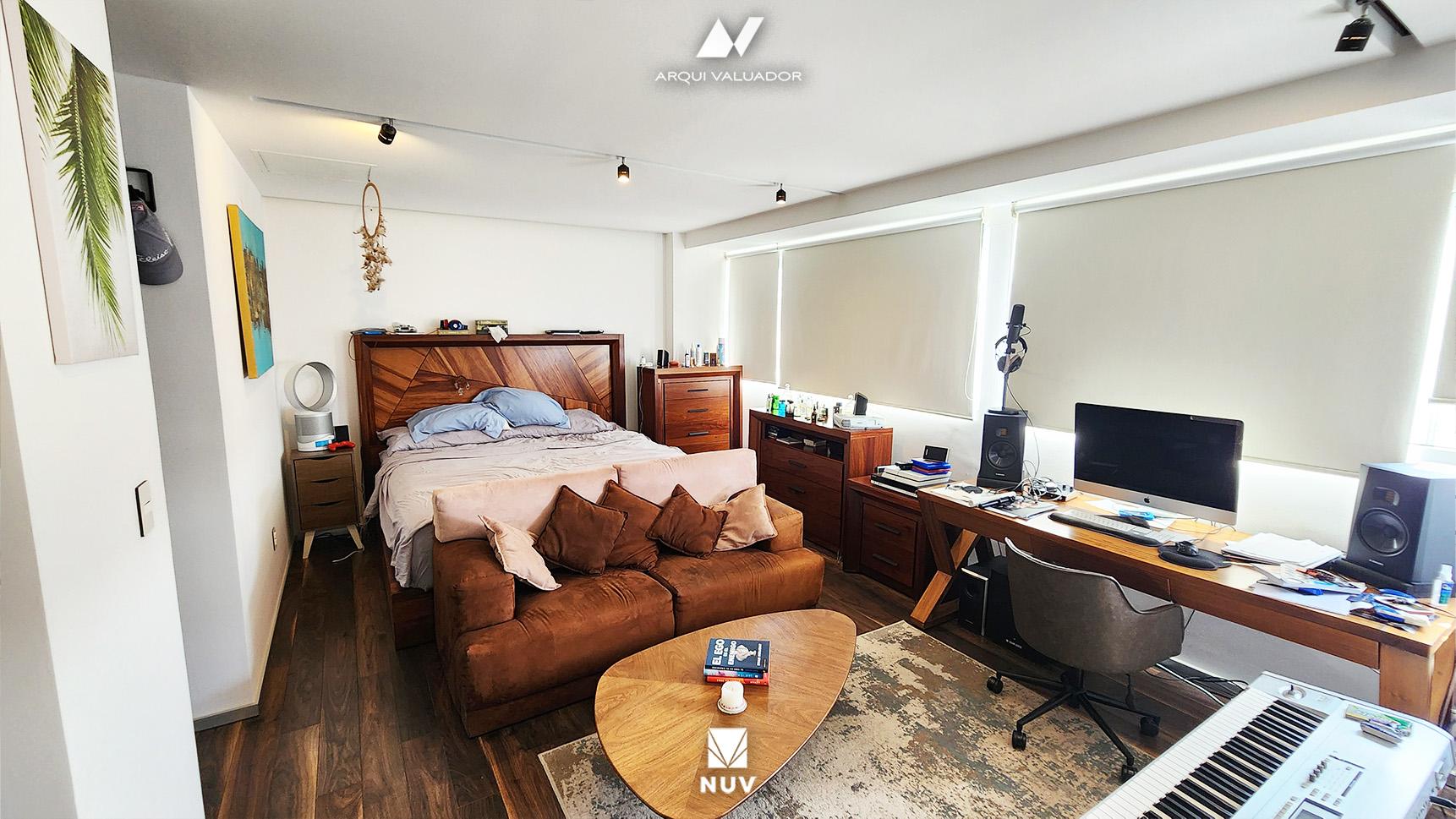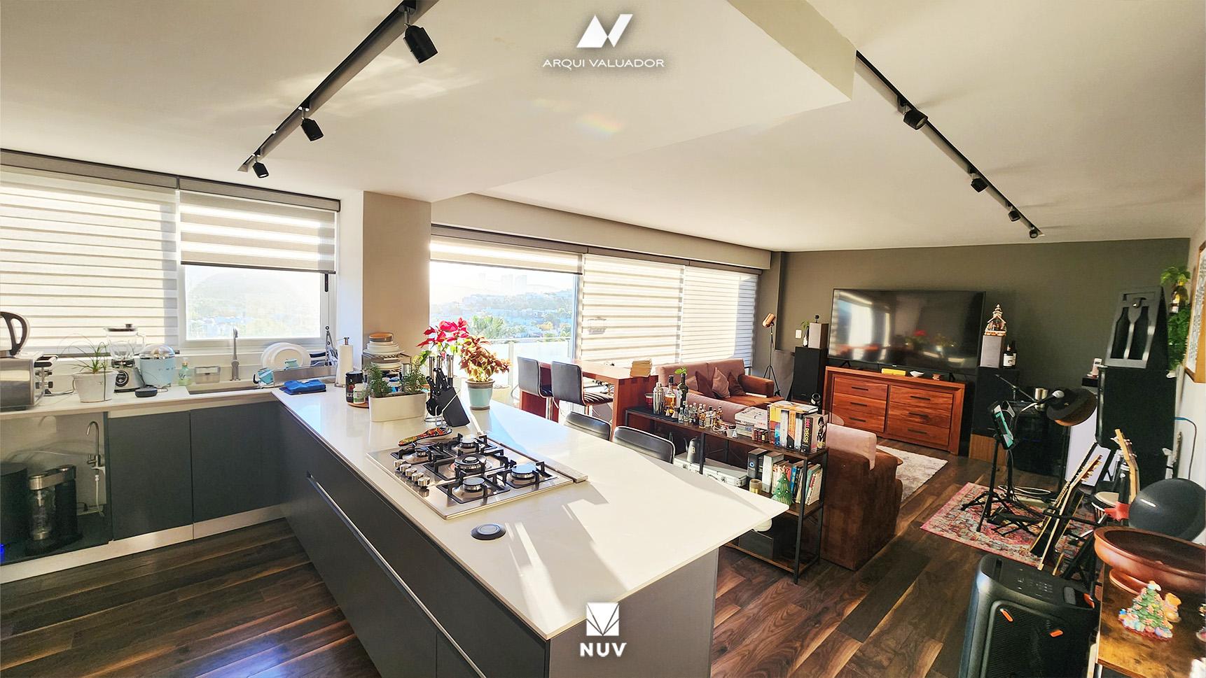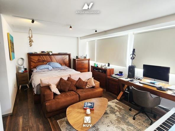 Acabados de lujo como piso de ingeniería en todo el depa, excepto baños, donde hay mármol.